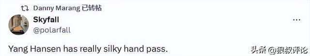 NBA选秀专家SkyfallV在社交媒体上评价了杨瀚森:“杨瀚森的传球真的很丝滑 。”